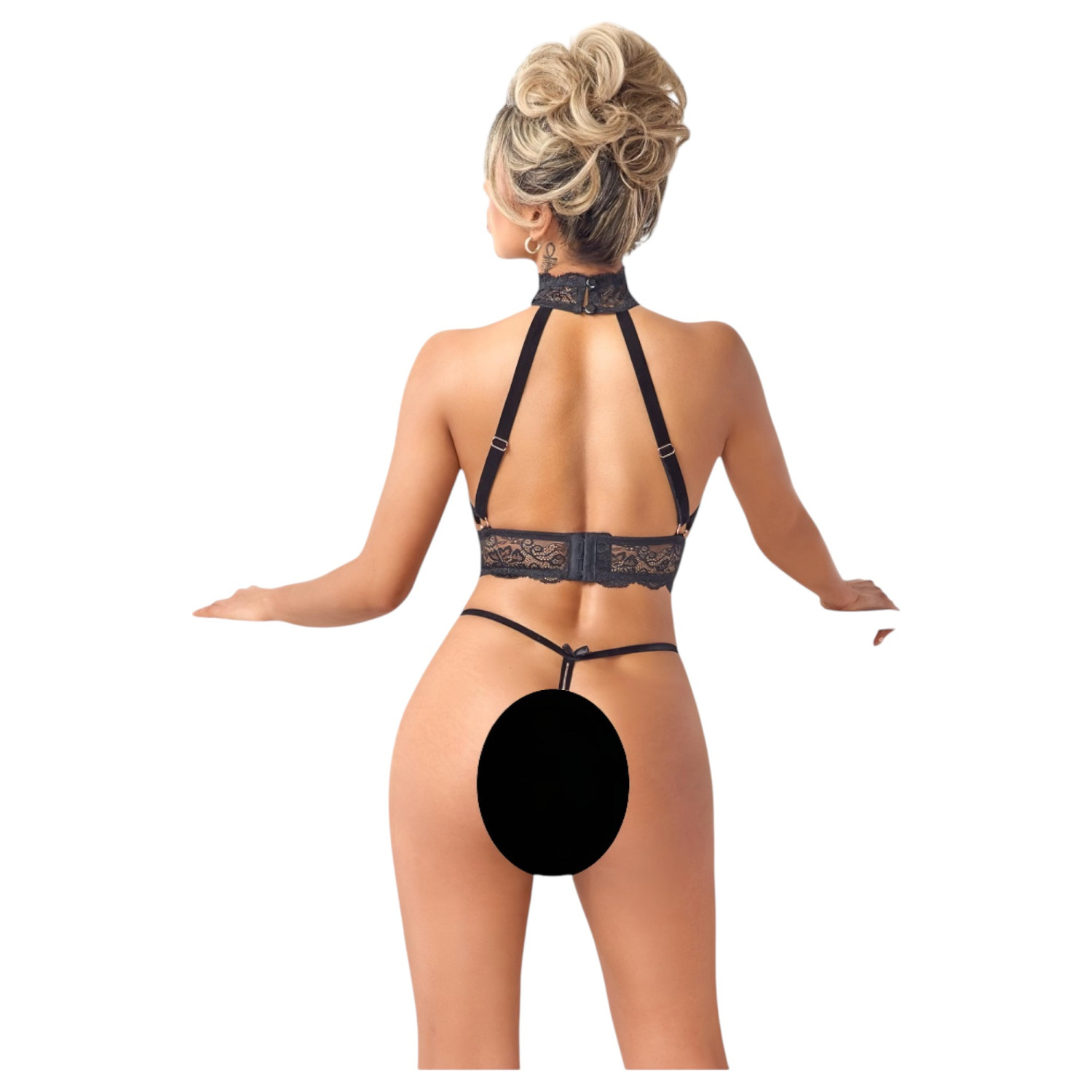 Abierta Fina - комплект отварено бельо с верижки (черно) - M