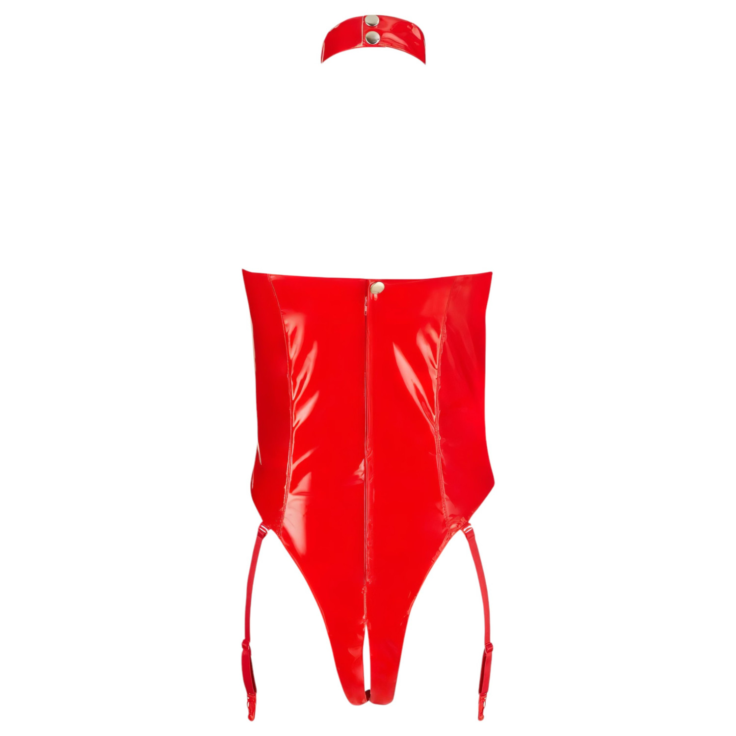 Предизвикателно червено боди, което оставя гърдите и интимната зона напълно открити!
