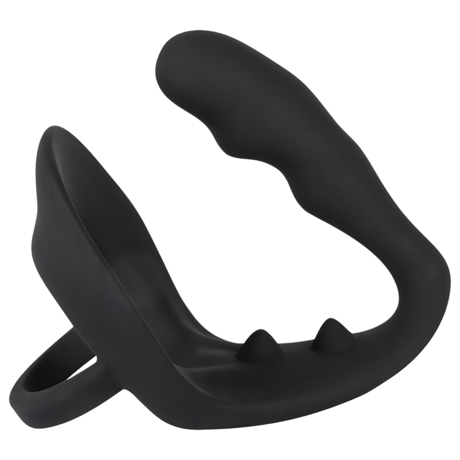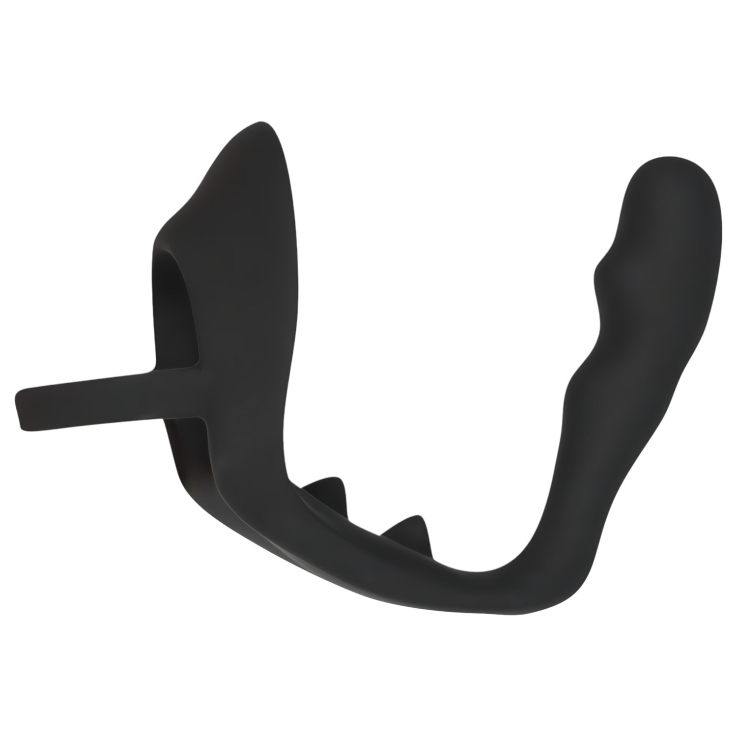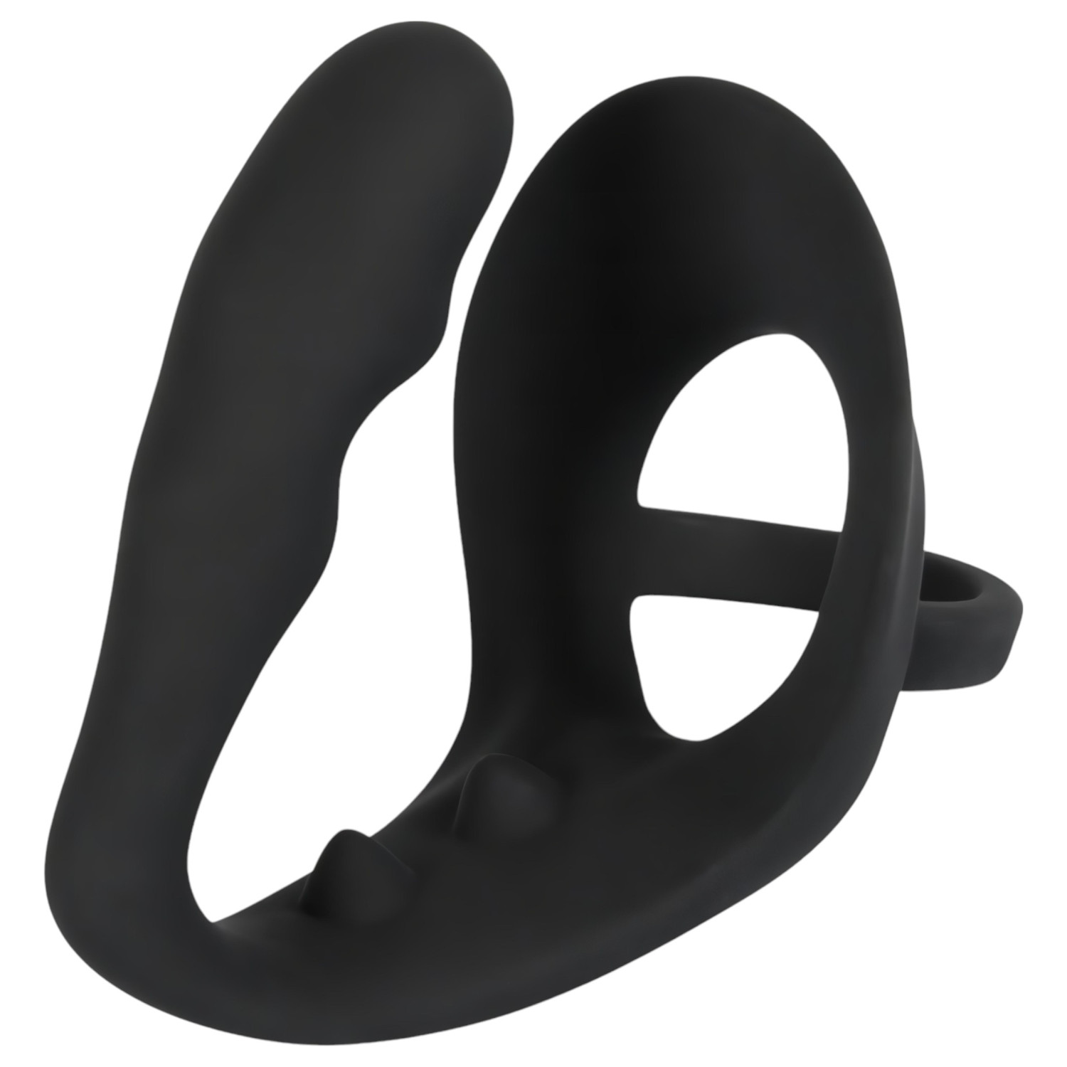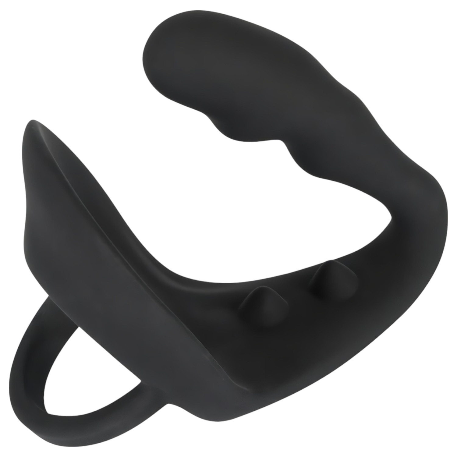 Кадифено нежният, висококачествен силиконов пръстен за тестиси и пенис се допълва от анално дилдо, което осигурява интензивна простатна стимулация.