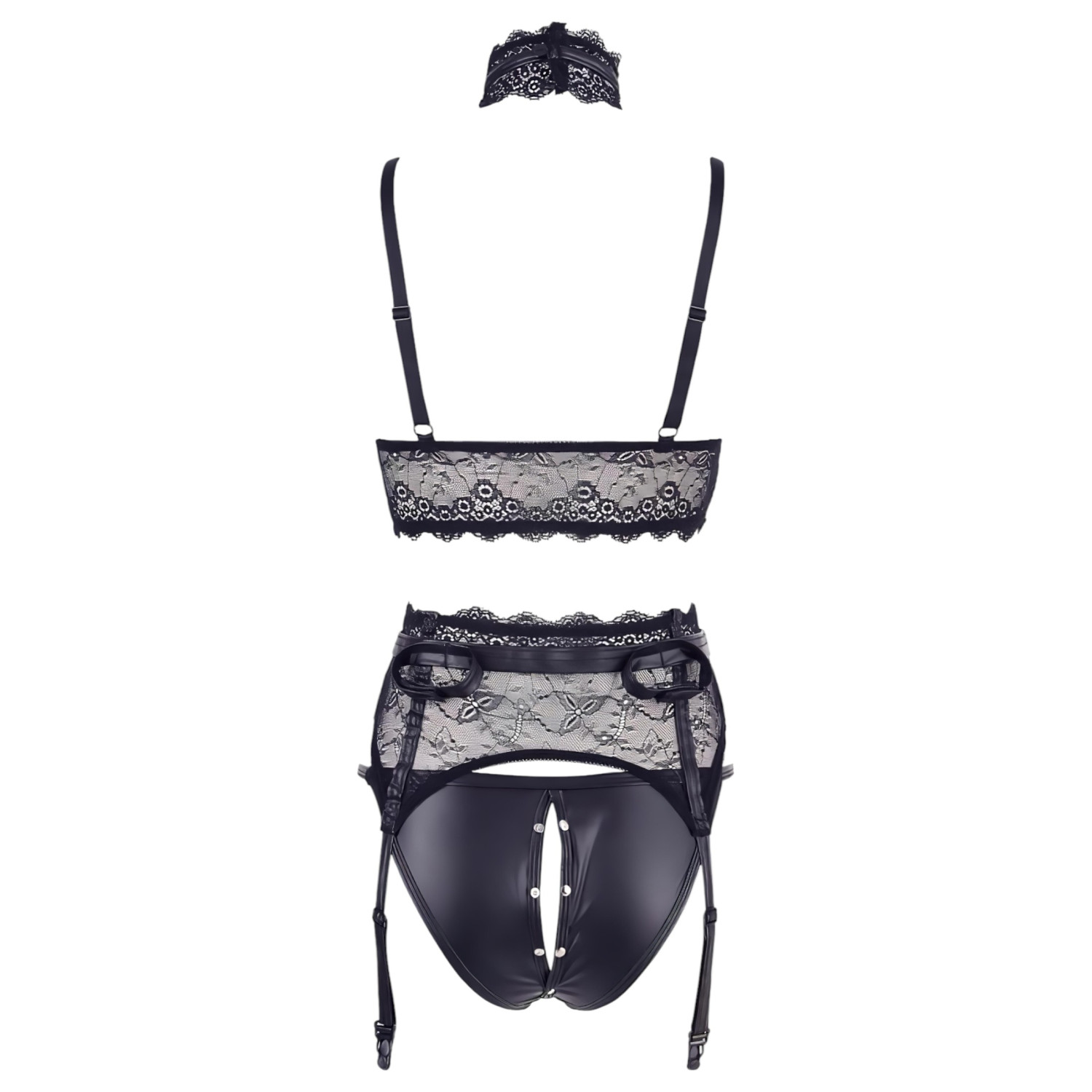 Cottelli Bondage - комплект бельо с дантела и белезници (черен) - L