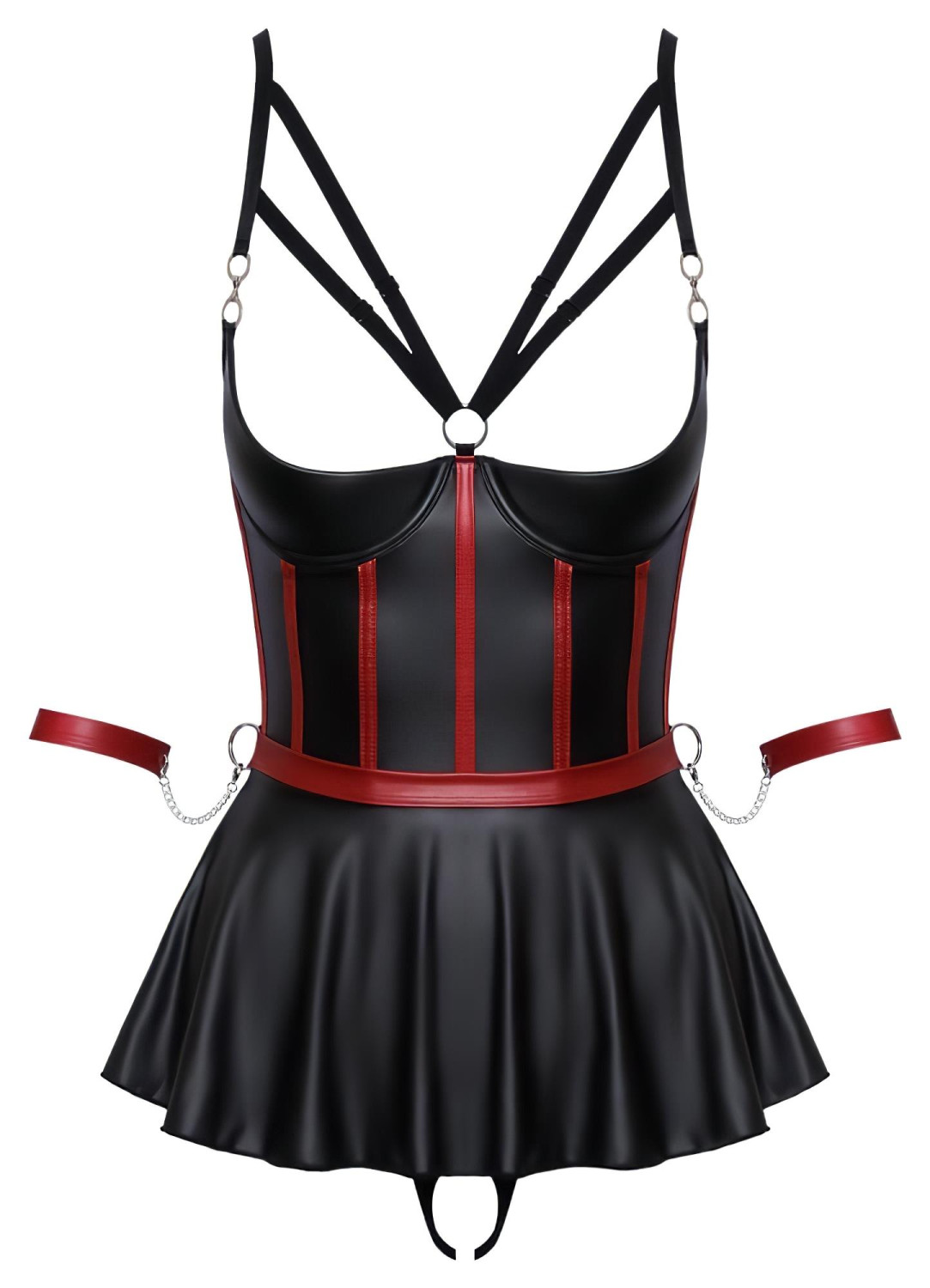 Идеалното бюстиé с пола за палави игри с връзване - съблазнителна комбинация от матово черно и огнено червено!