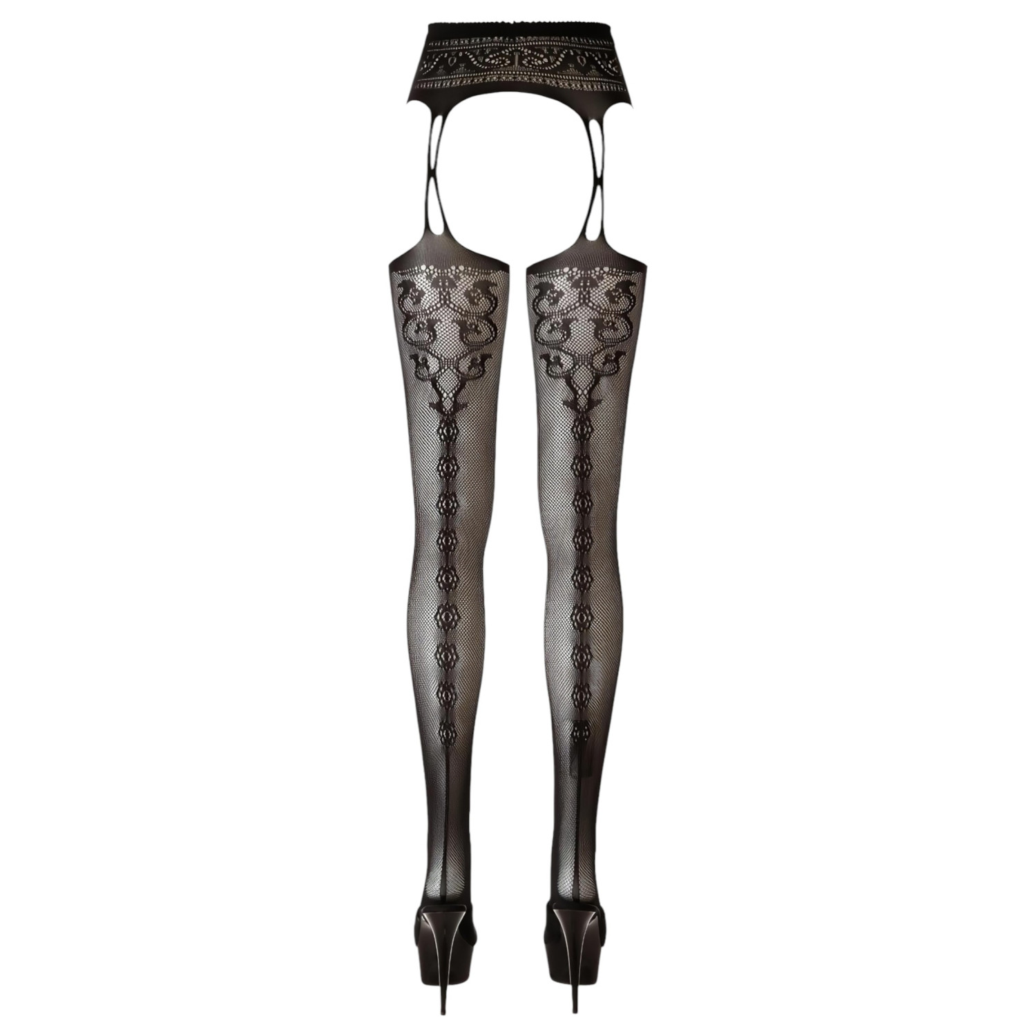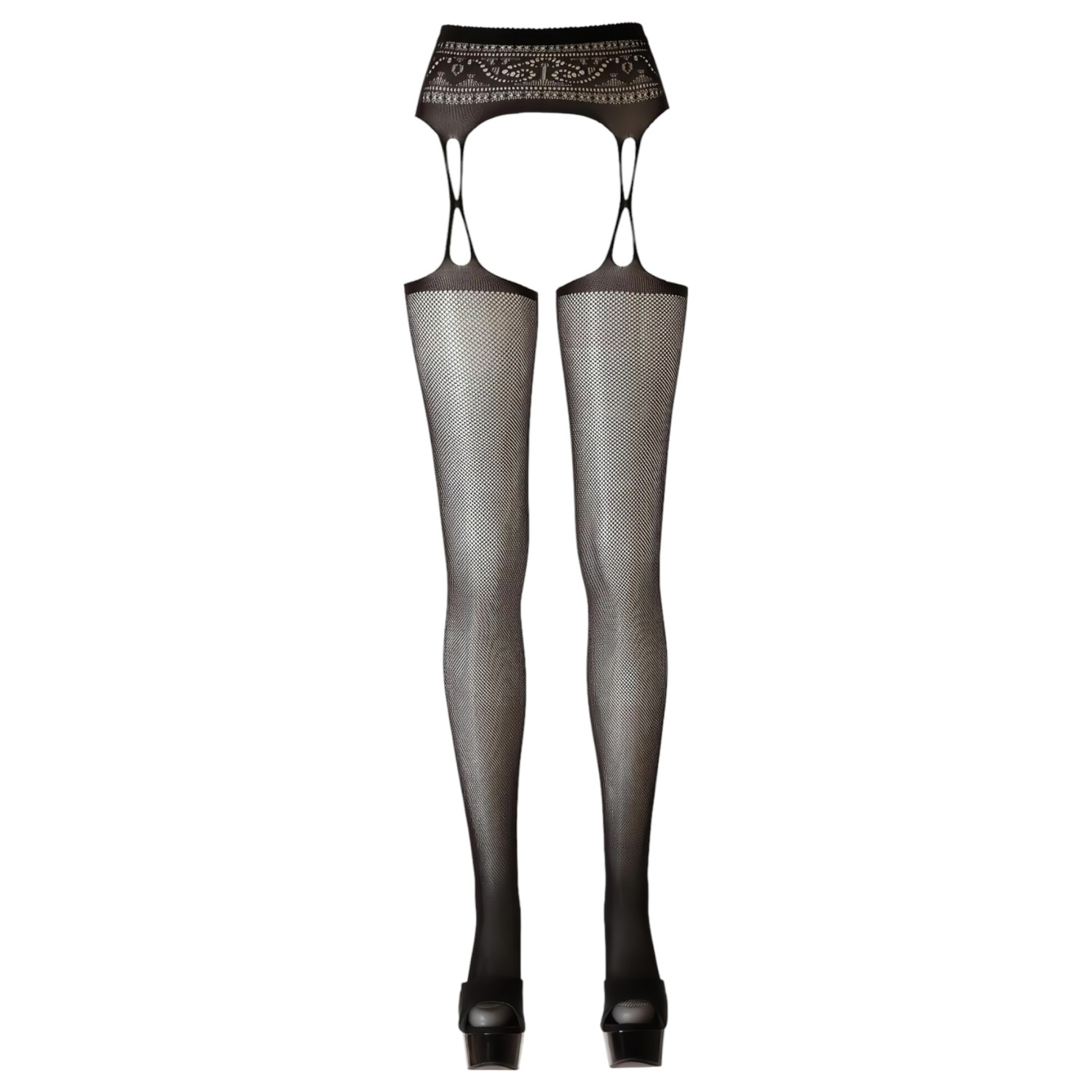 Cottelli - плътни мрежести чорапи с шарка (черни) - L/XL