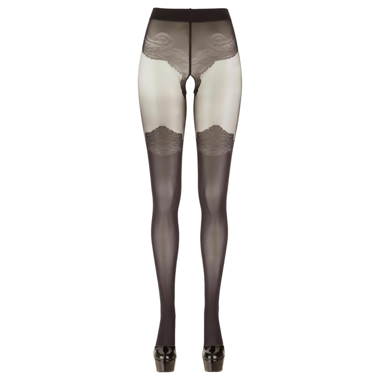 • По краката и талията - 40 ден плътност, на бедрата - по-прозрачен 20 ден, имитиращ дамски бикини и дантелен чорап