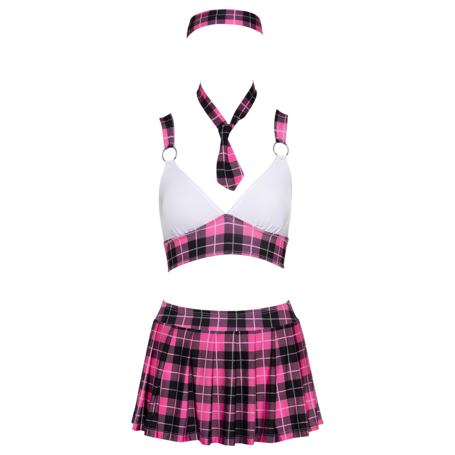 Костюм на ученичка с карета на Cottelli - розов комплект - M