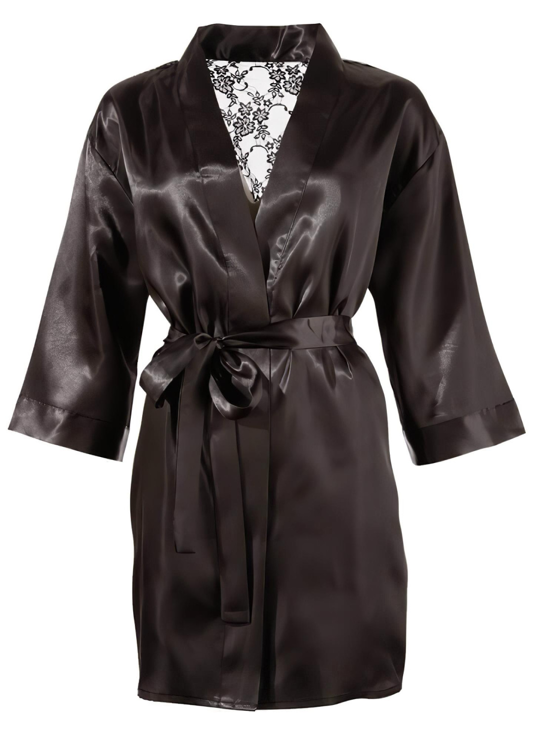 Отзиви Къс халат от сатен и дантела, черен – Cottelli - L/XL
