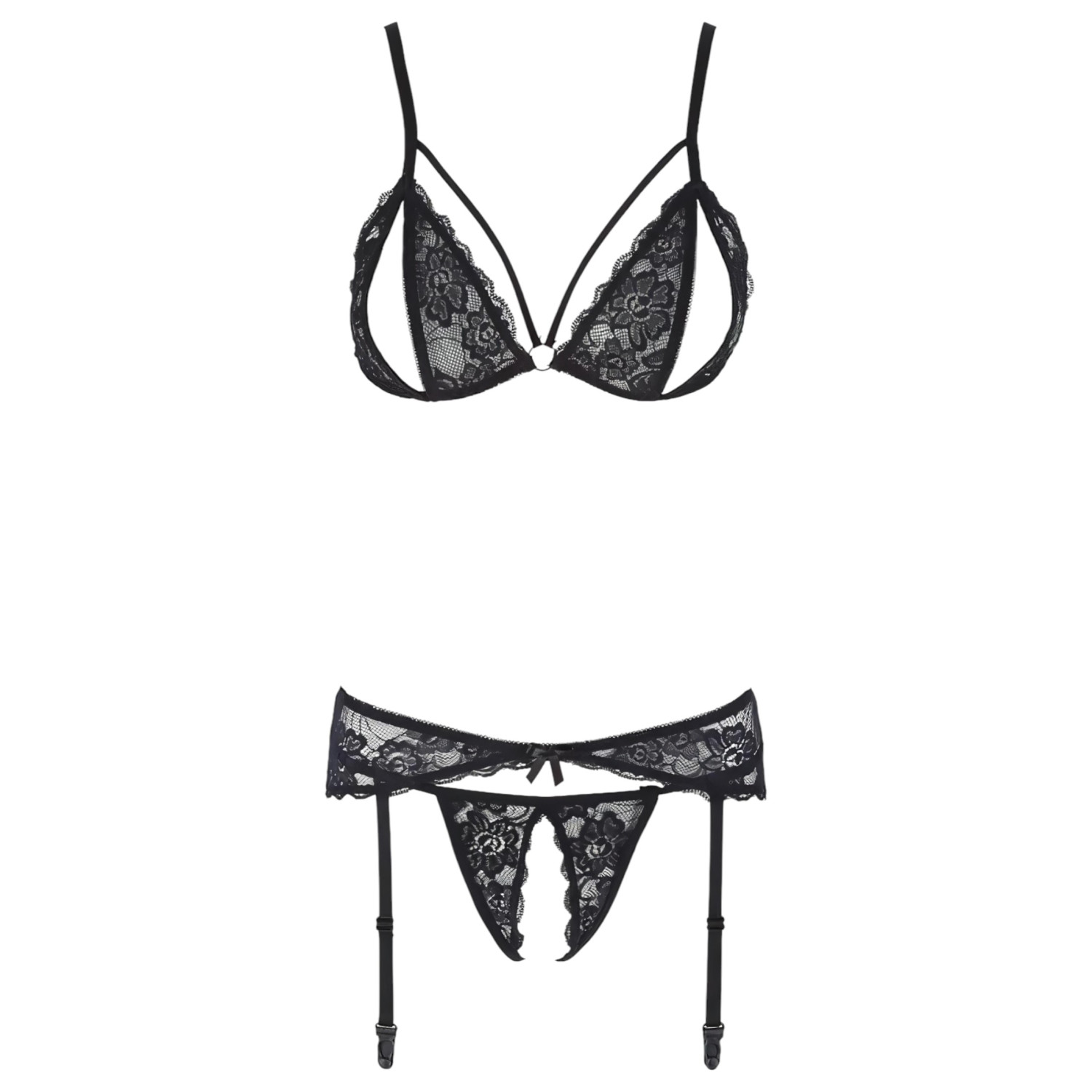 Cottelli - отворен, дантелен комплект бельо (черен) - M