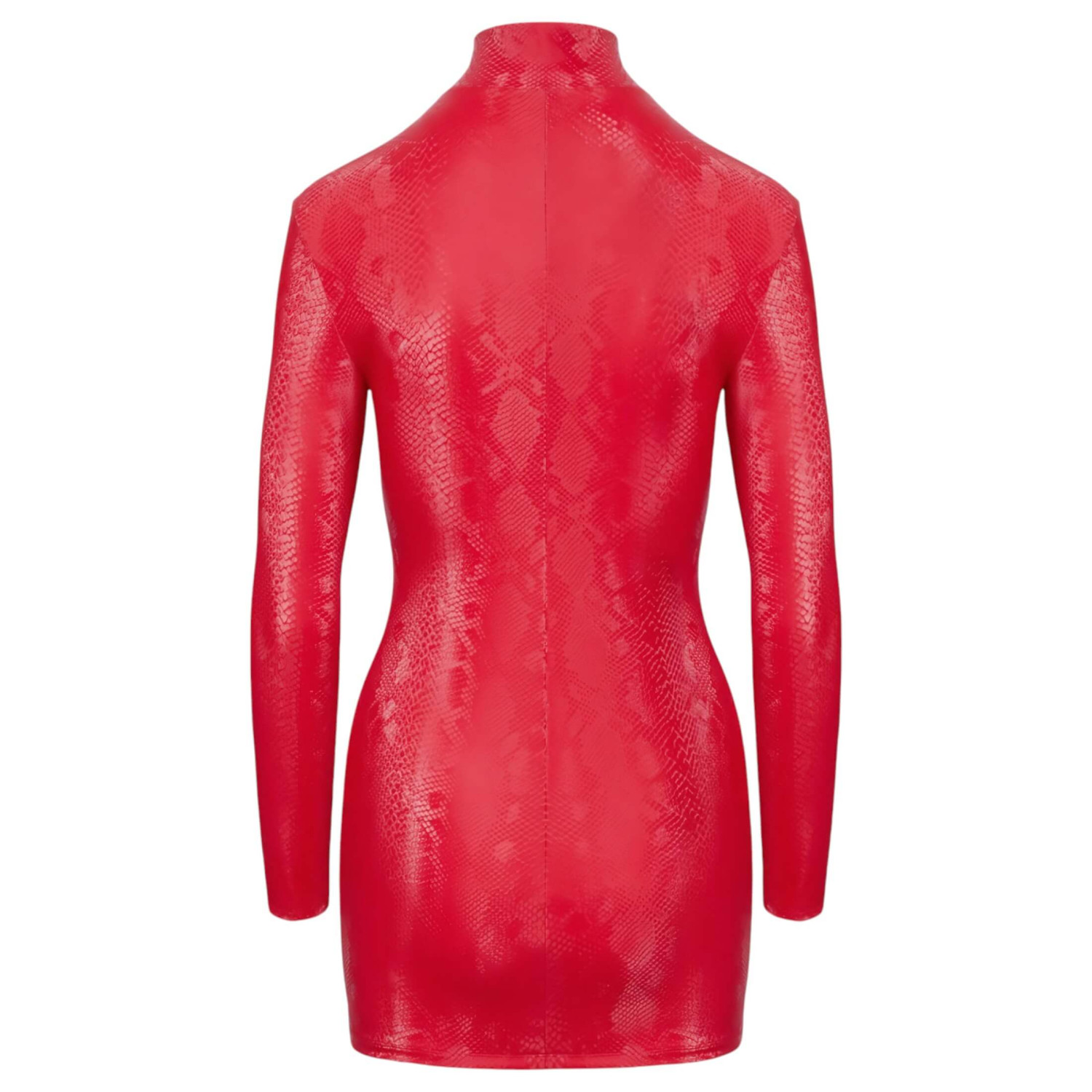 Парти роклята на Cottelli е супер прилепнала и ултра къса - във впечатляващ червен змийски дизайн.