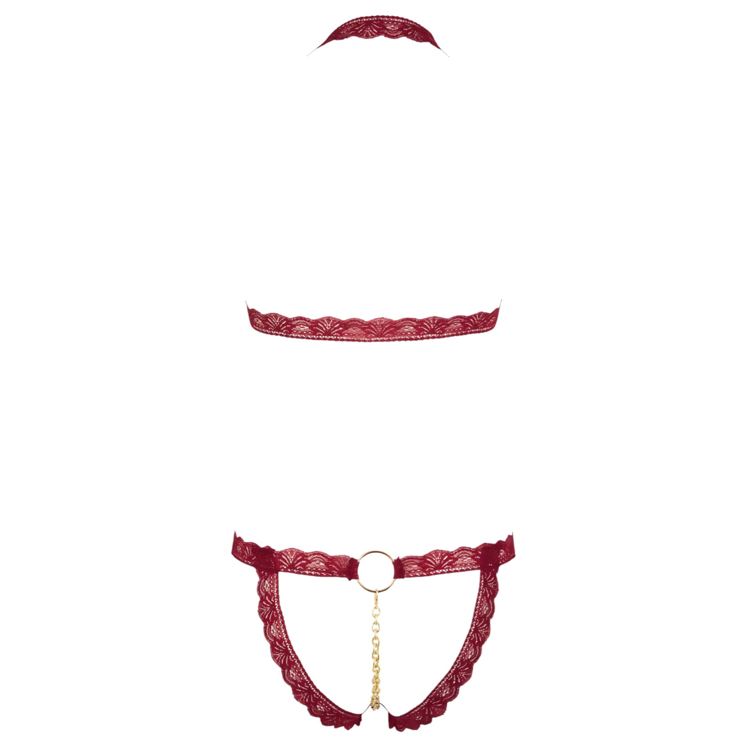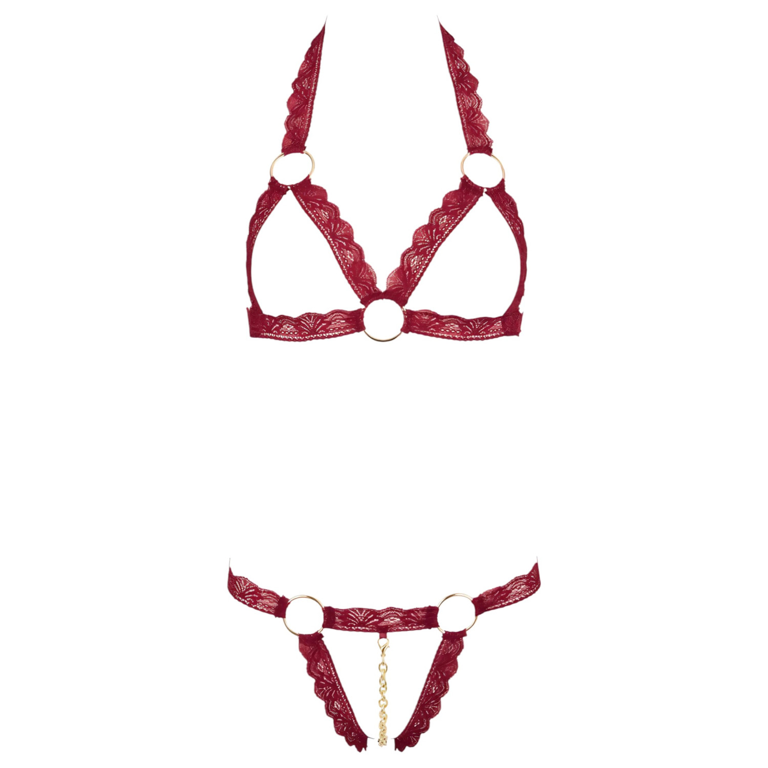 Cottelli - метален пръстен, отворен сутиен комплект (червен) - M/L