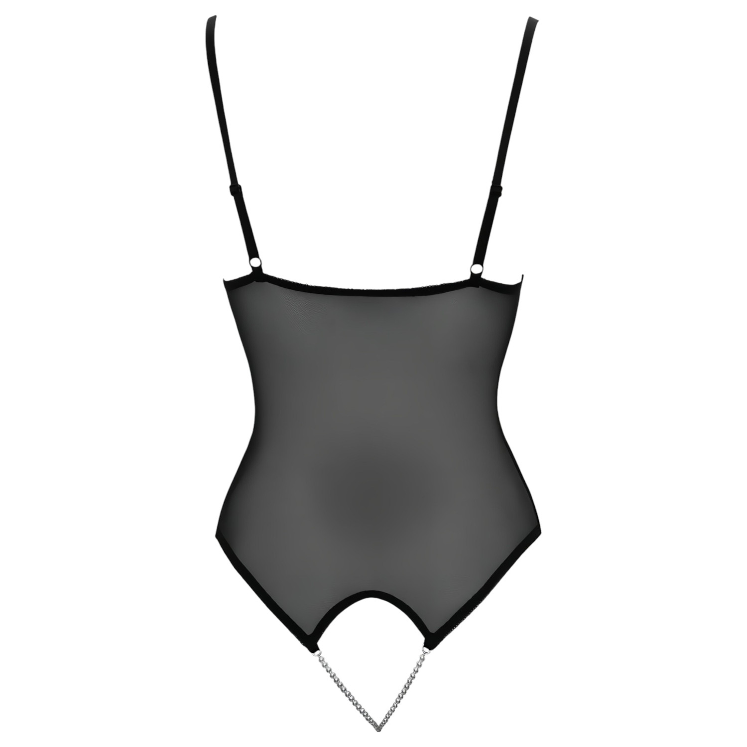 Cottelli - дантелено, перлено отворено боди (черно) - XL