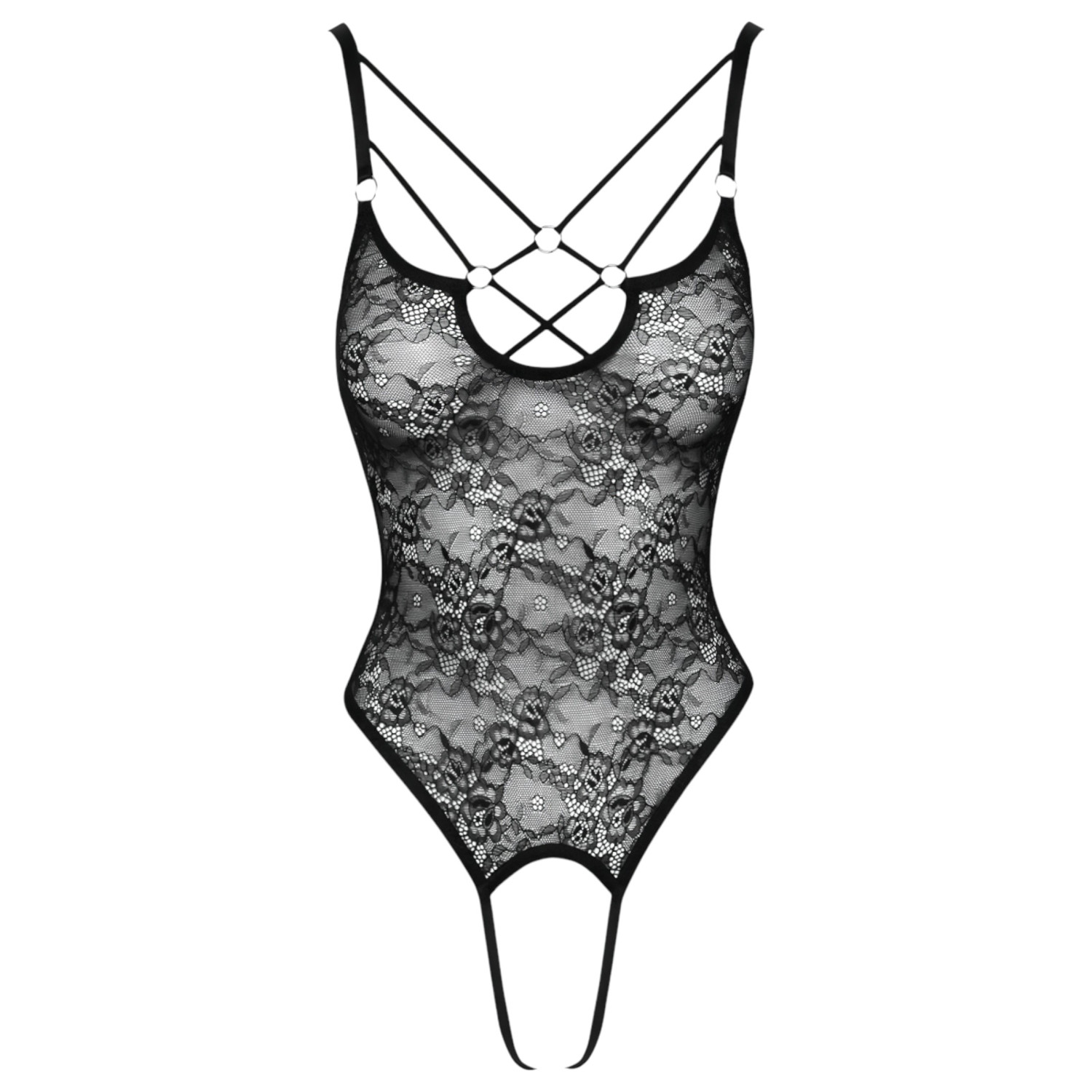 Отзиви Cottelli - прозрачен дантелен бодис с отвор (черен)