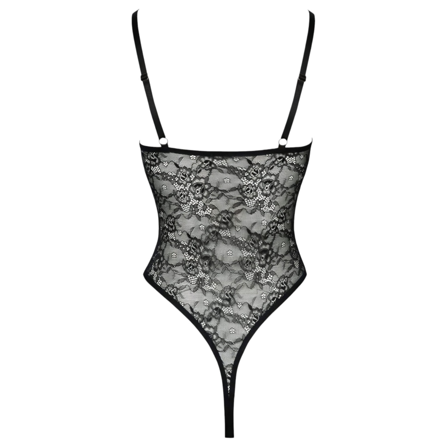 Cottelli - прозрачен дантелен бодис с отвор (черен)