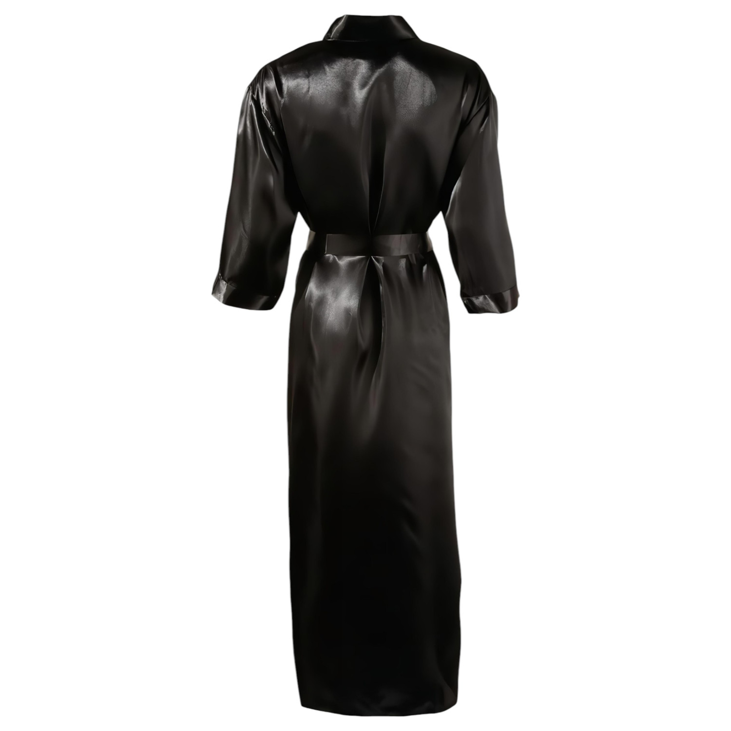 Дълъг сатенен халат с практичен колан за връзване.