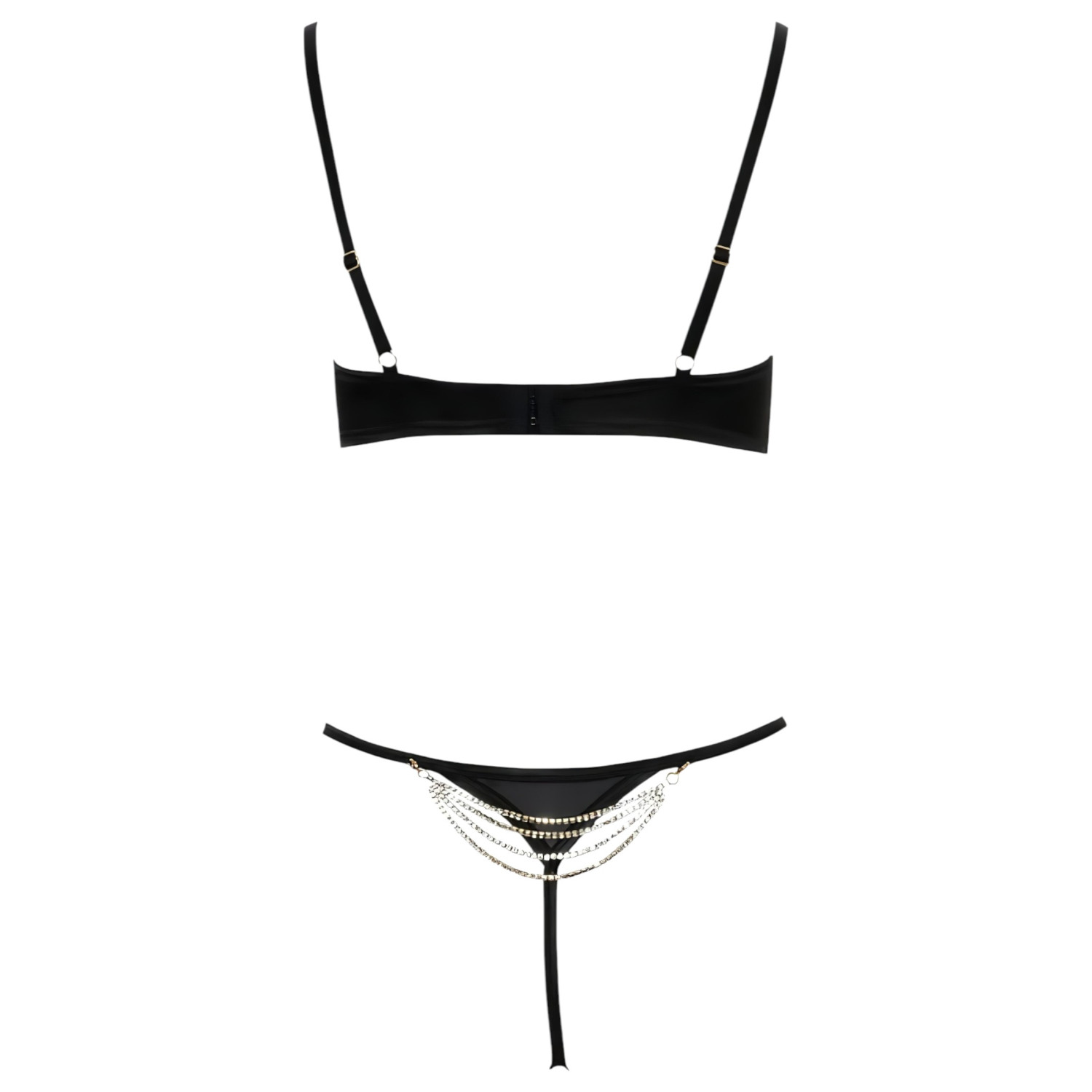 Cottelli - сатенен комплект с верижка и страсове (черен)