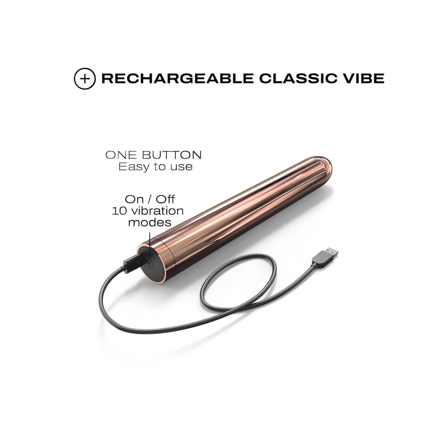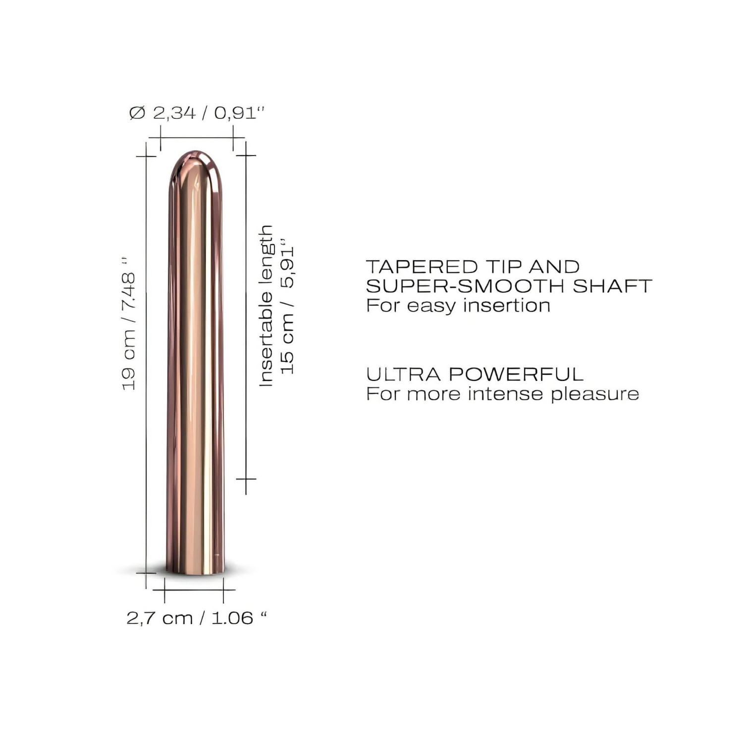 • Стабилно тяло с бляскав металически дизайн - стои стабилно под всякакъв ъгъл и може да се ползва и като външен вибратор, като същевременно изглежда супер луксозно