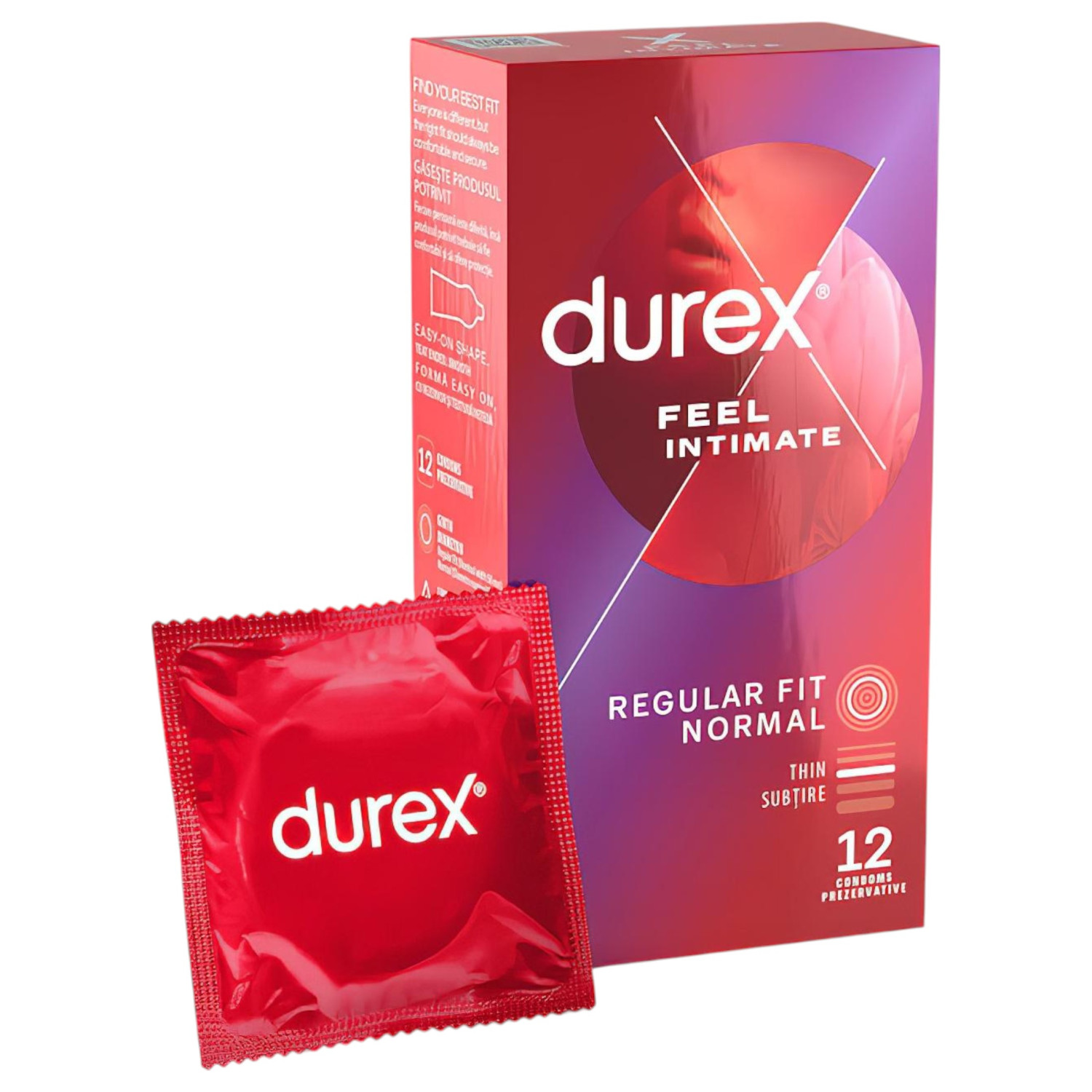 Durex Feel Intimate са изключително тънки и фабрично овлажнени латексови презервативи, които осигуряват естествено усещане, а формата Easy‑On ги прави супер лесни за поставяне - перфектният избор, ако търсиш едновременно лекота и сигурност.