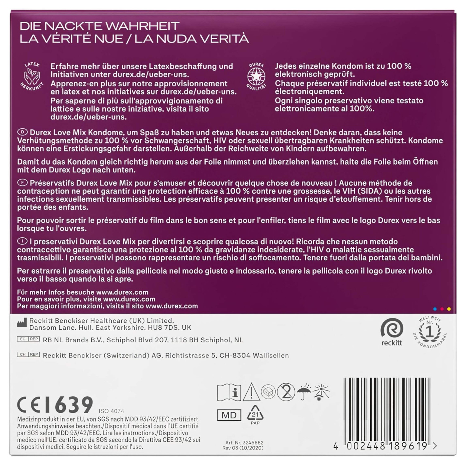 Durex Love Mix е идеален за тези, които не обичат скучните моменти. Вътре ще намериш пет различни вида презервативи, така че импулсът, страстта или нежността винаги могат да бъдат част от играта. Качество, комфорт и разнообразие - всичко в една кутия.