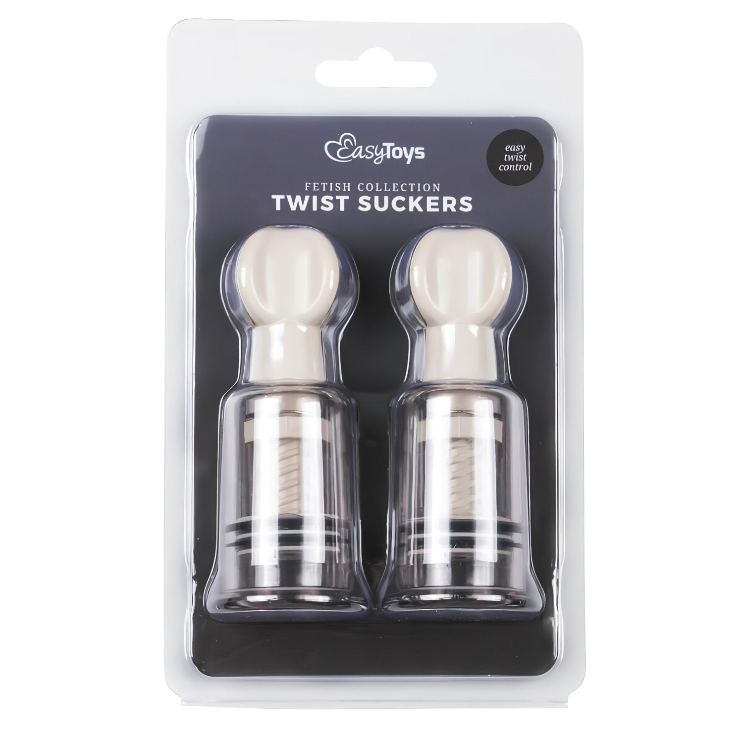 Употреба:Просто поставете малките чашки плътно върху зърната (едно по едно). Чрез завъртане на индивидуално регулираните бели въртящи се бутони създайте вакуум и ще изпитате чувствено засмукване.Съдържание на пакета: