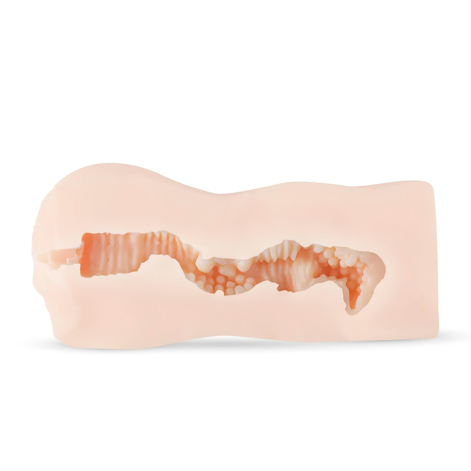 Възбуди се и с помощта на лубрикант на водна основа проникни в стегнатата вагина. Мекият и гъвкав материал нежно обгръща члена ти. Движи отвора нагоре-надолу за реалистично усещане и мощна стимулация. Ако натиснеш по-силно, усещането става още по-плътно и интензивно.
