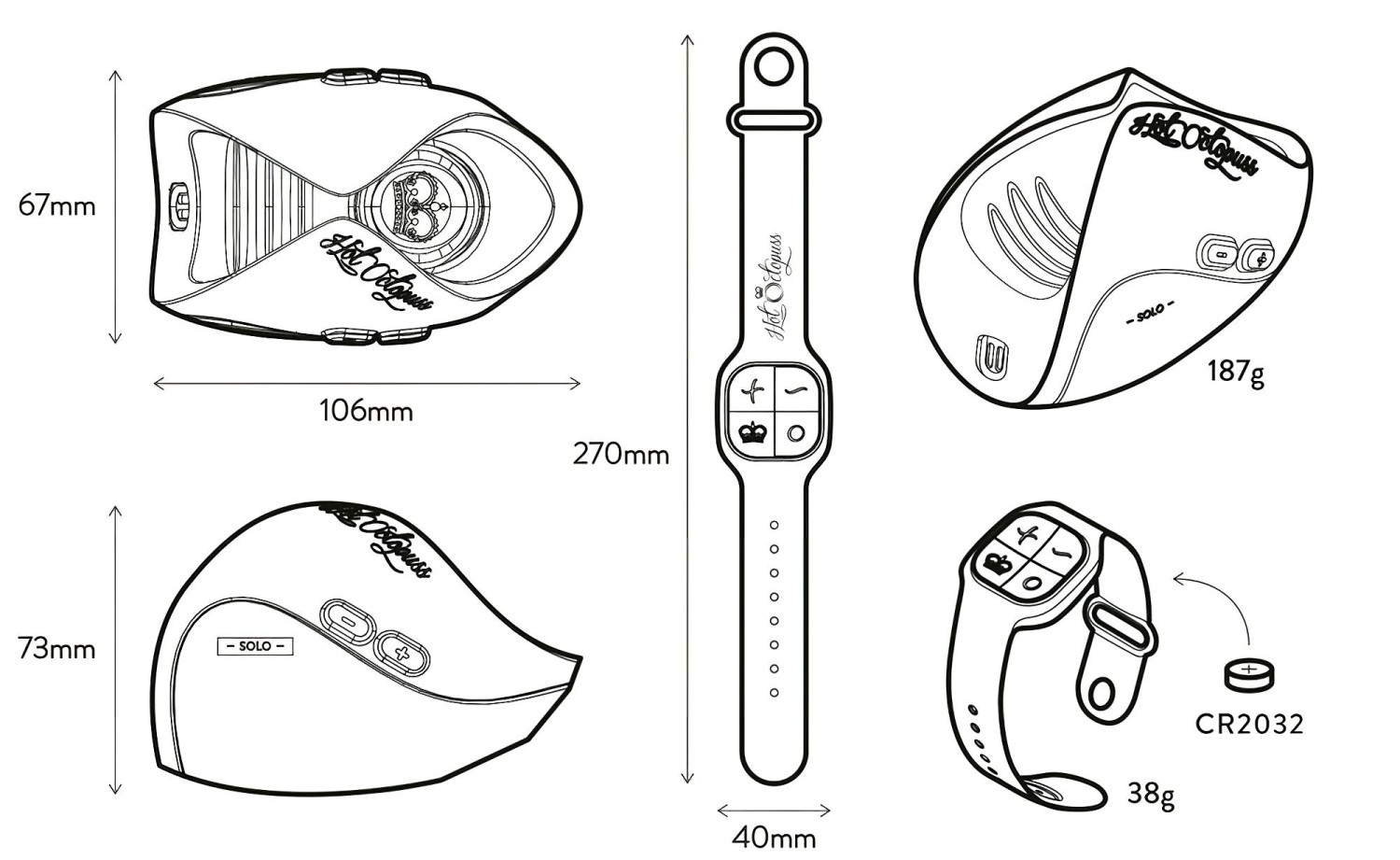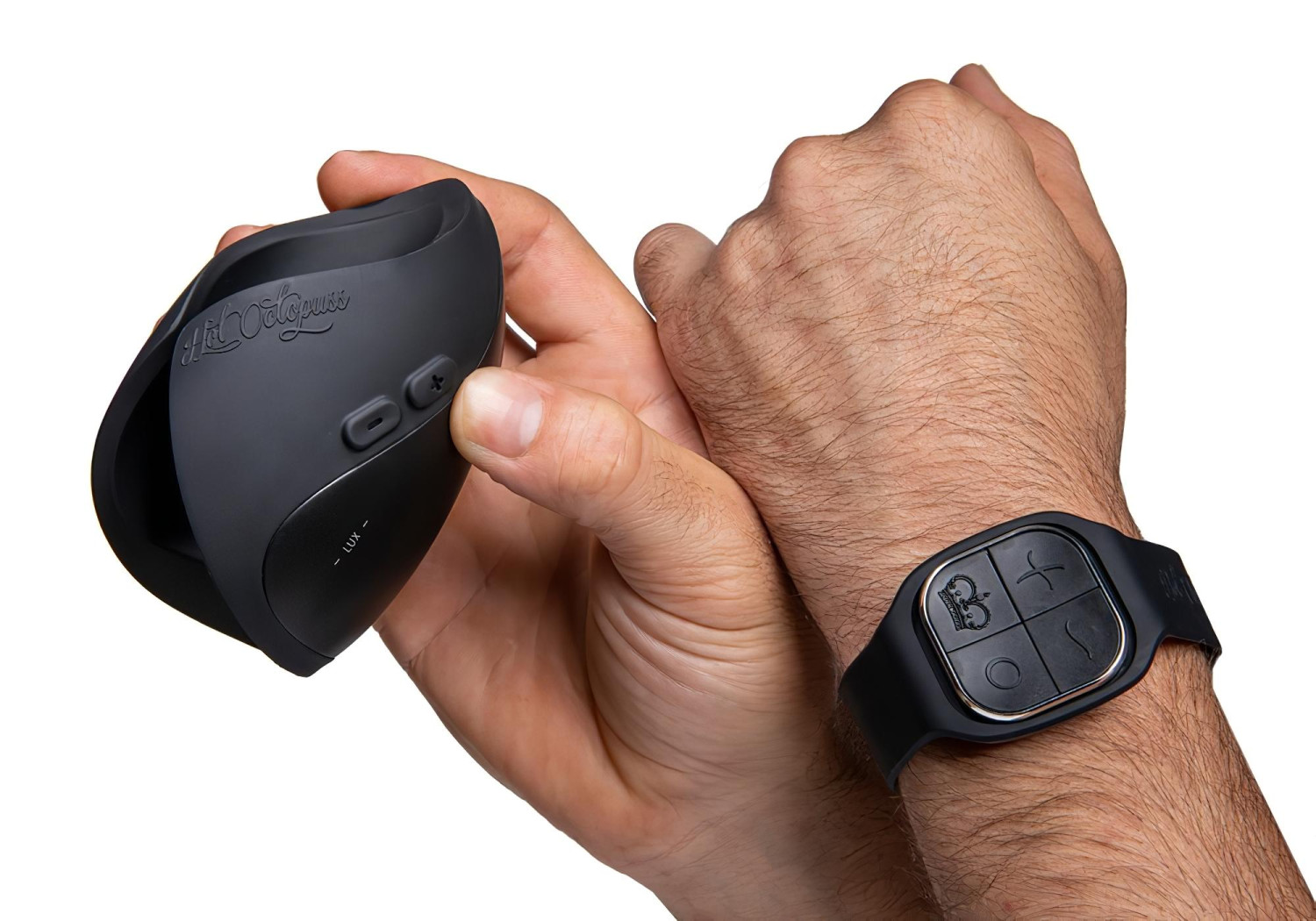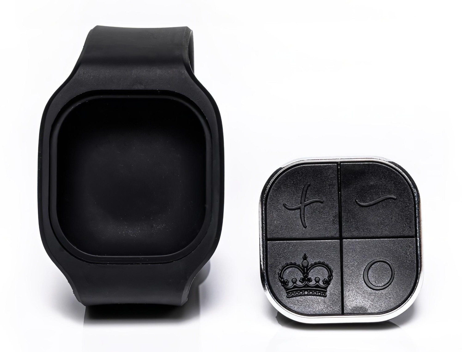С безжичното дистанционно във формата на часовник лесно ще управляваш устройството. С бутоните можеш да превключваш между 5 различни режима и да избираш между 8 нива на интензивност.
