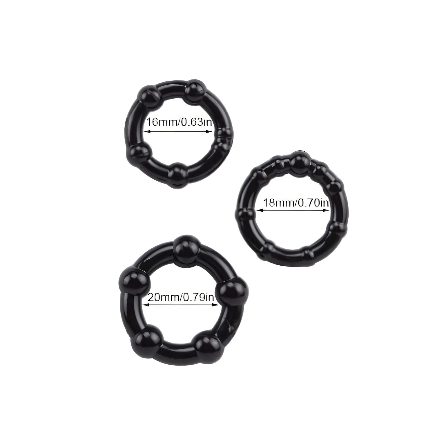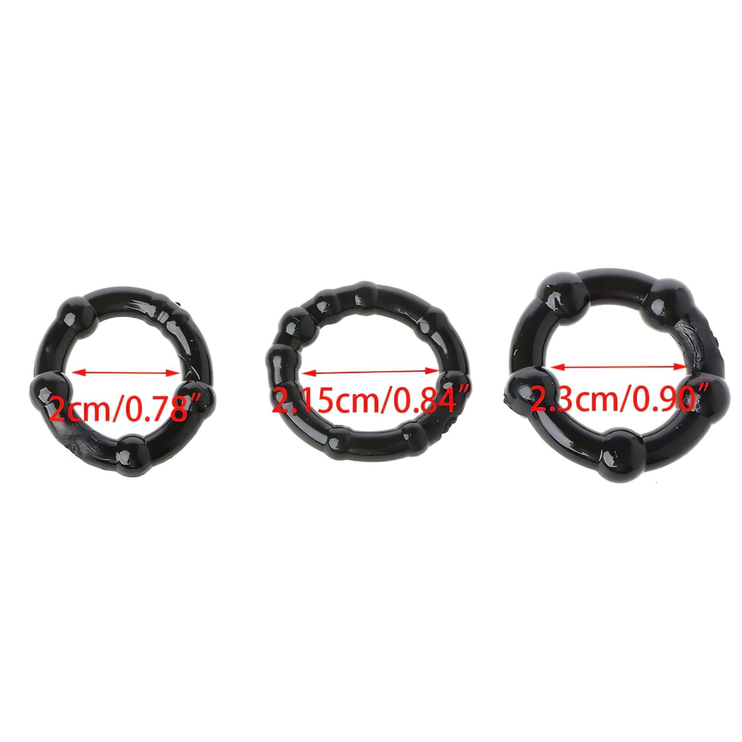 • Вътрешни диаметри на пръстените: 2 см, 2,2 см, 2,3 см (много разтегливи)