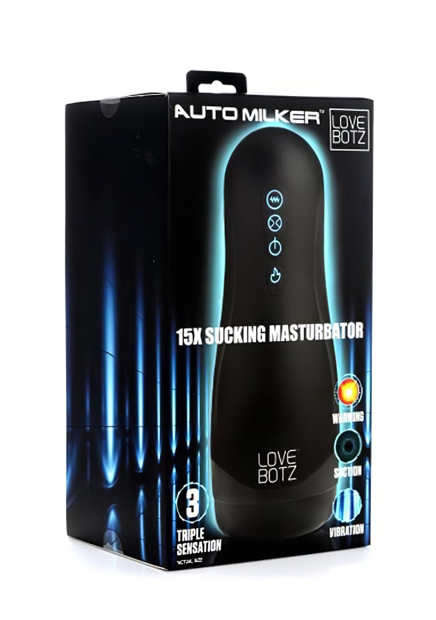 Lovebotz Auto Milker - водоустойчив смукателен вибриращ мастурбатор (черен)