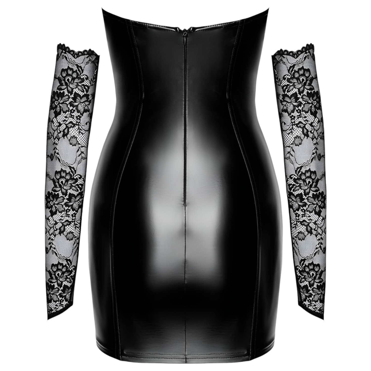 • Елегантен дизайн: Черният powerwetlook плат с прозрачен дантелен бюст прави роклята стилна и супер съблазнителна.