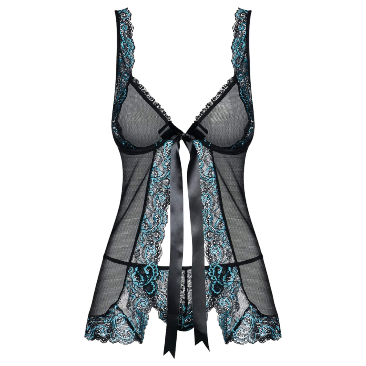 Чувствено елегантен прозрачен бейбидол с тюркоазени бродерии, за да изненадаш партньора си по възможно най-съблазнителния начин!Защо ще ти хареса?