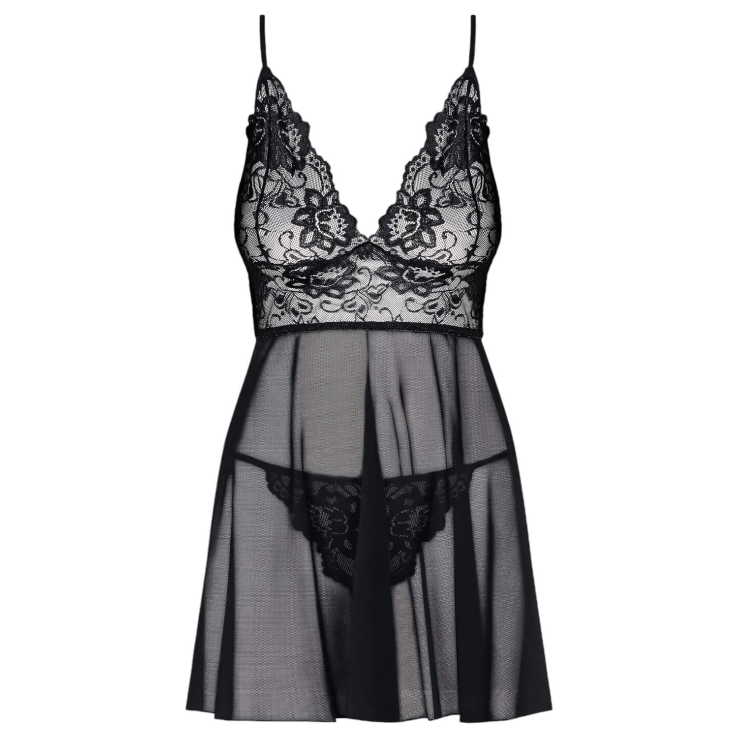 Obsessive Idillia - ефирна дантелена нощница и прашки (черни) - L/XL