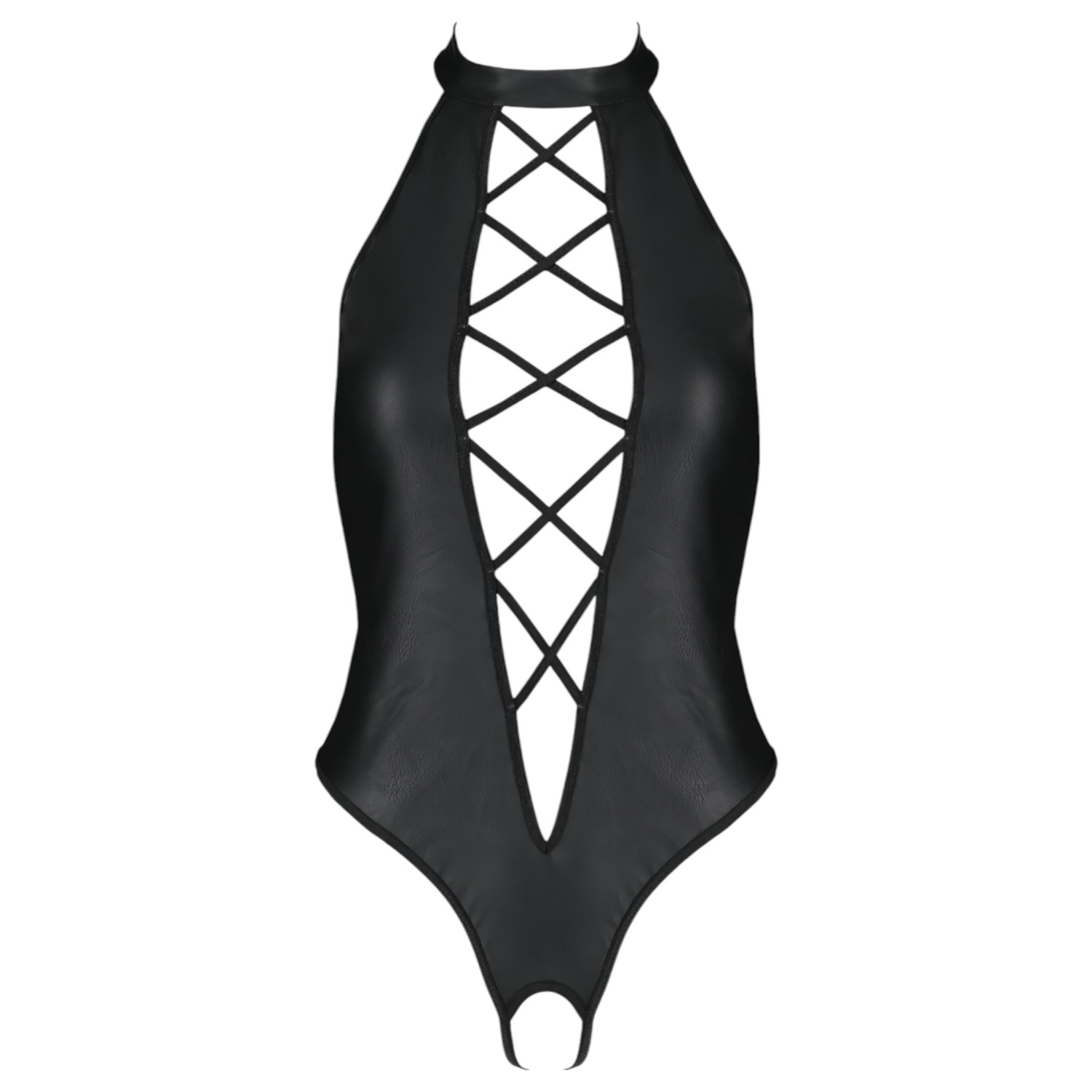 Секси бодие с кожен ефект, което можеш да носиш и по време на игра, защото е напълно отворено отпред и отзад!