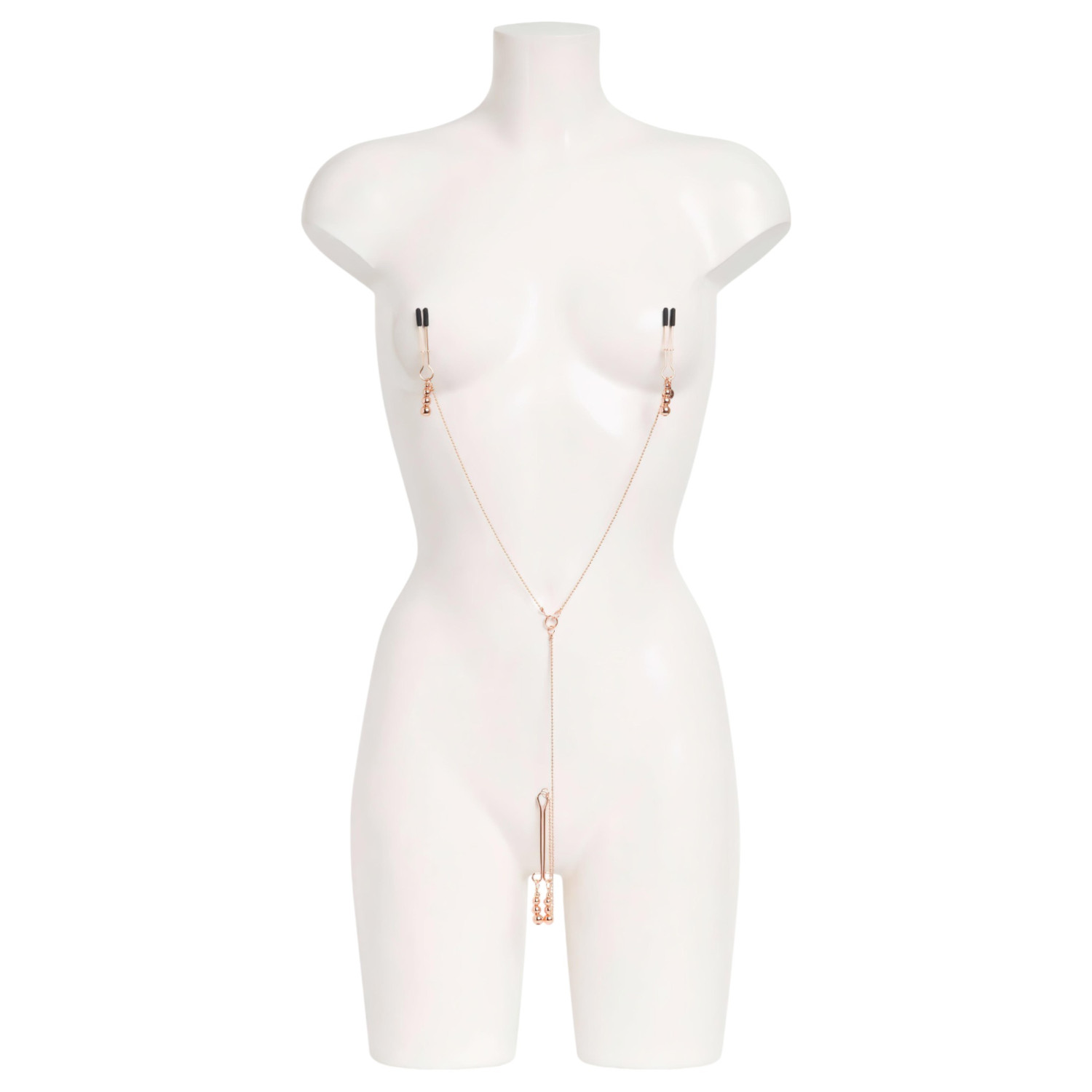 Това е украса за клитора и зърната, свързана с верижка, която не причинява болка - само леко пристягане, което усилва усещанията.