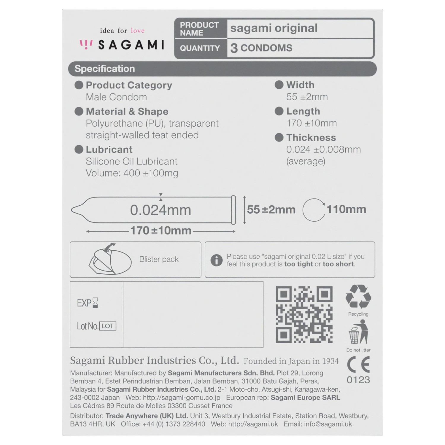 Презерватив Sagami Original 0.02 (3 бр.) е практична, премиум качествена, ултратънка и безлатексова опаковка презервативи, която осигурява естествено, интензивно усещане за многократни поводи.