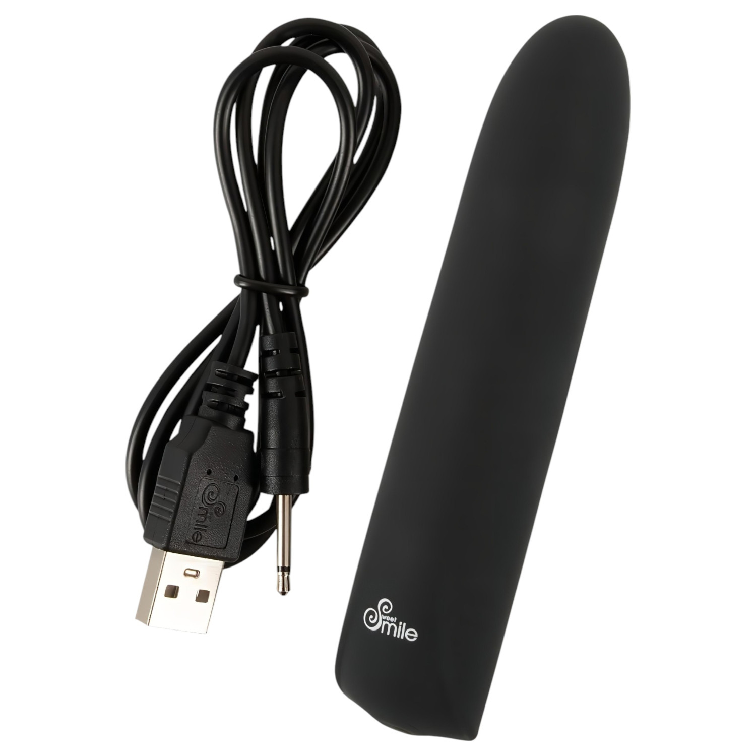 Усмивка - акумулаторен, водоустойчив мини вибратор (черен)
