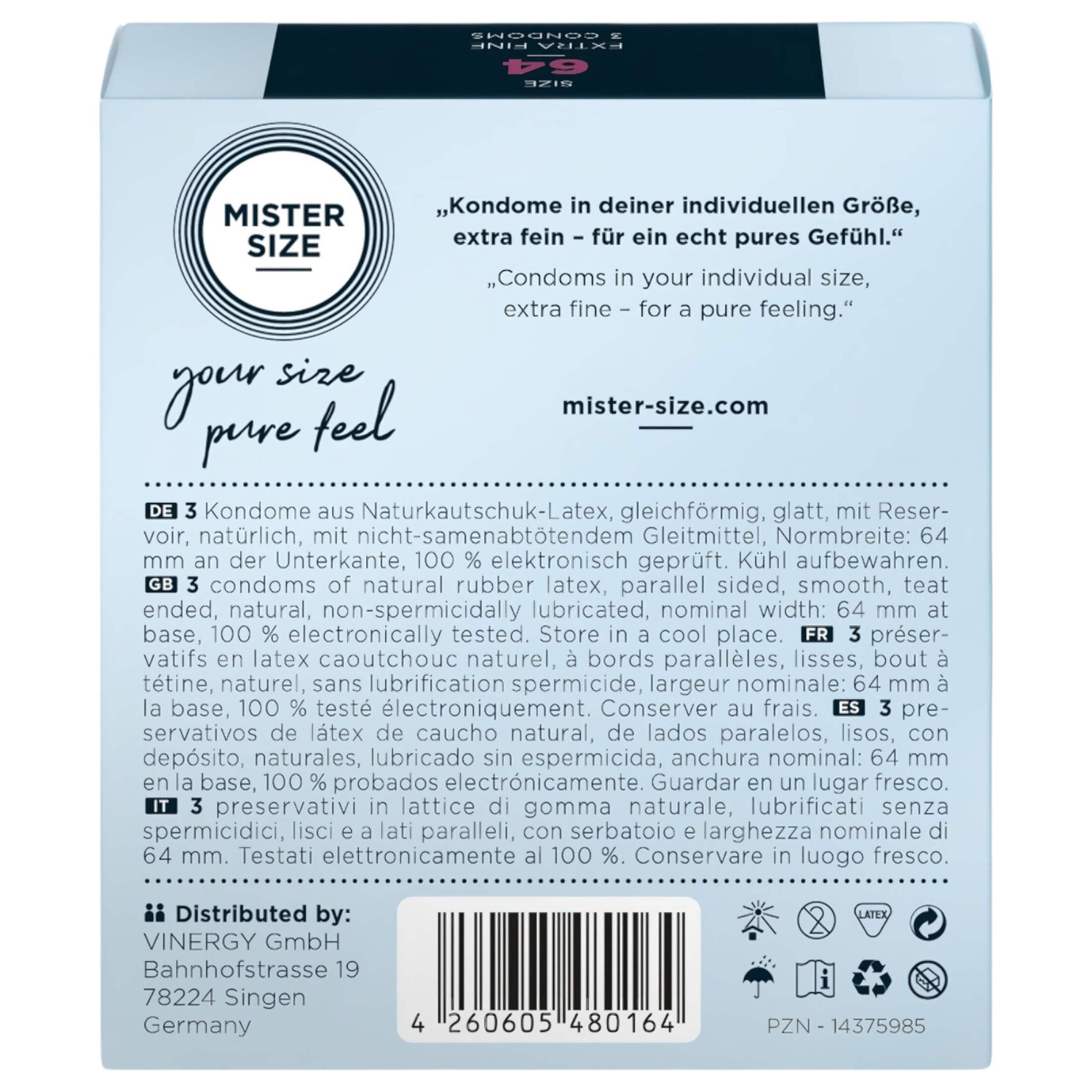 По-голям размер, нежно усещане - Mister Size 64 mm презерватив е създаден за тези, които не искат да правят компромис между удоволствието и удобството.