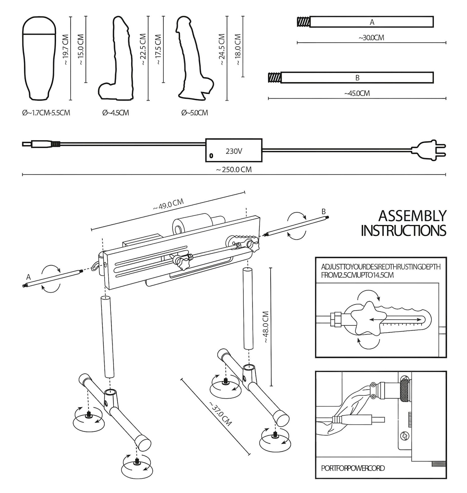 Сглоби основата на машината според илюстрираното ръководство, после завий едното дилдо на едното рамо, а мастурбатора - на другото.