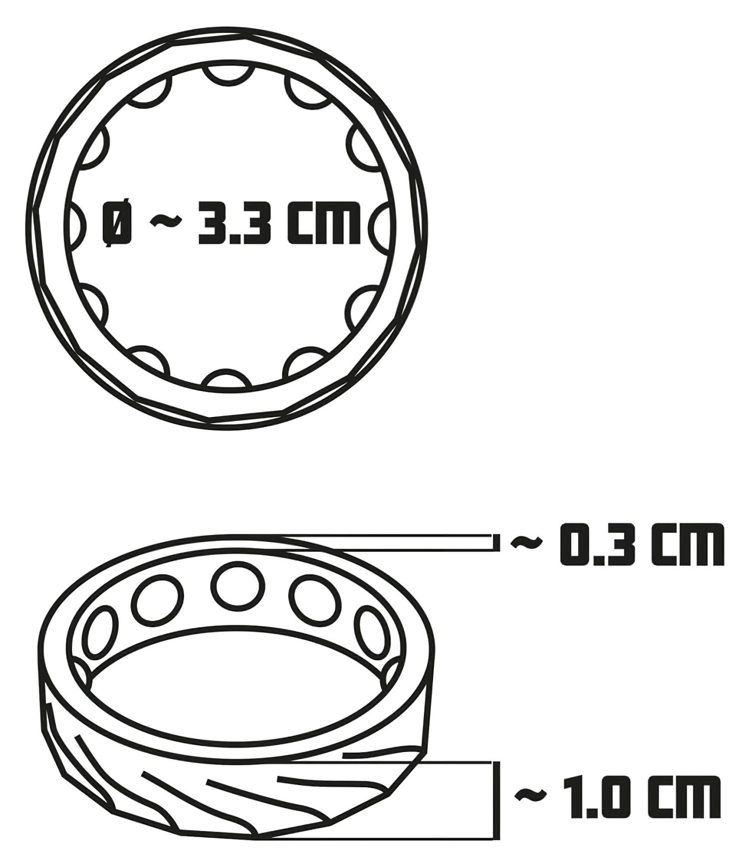 • външен диаметър: 3,9 см
