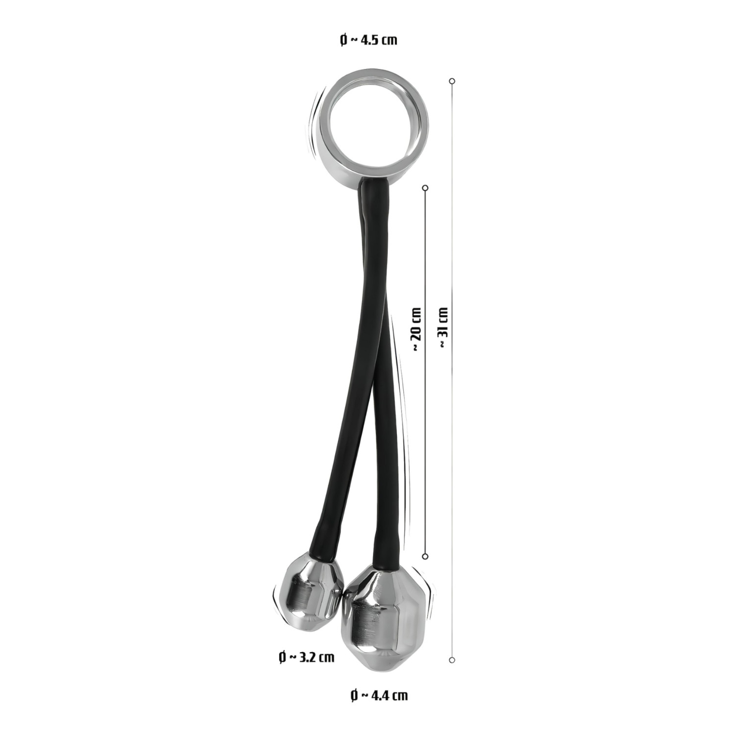 С две висящи тежести, които при анално поставяне стимулират простатата, а когато висят свободно, доставят интензивно усещане за дърпане.