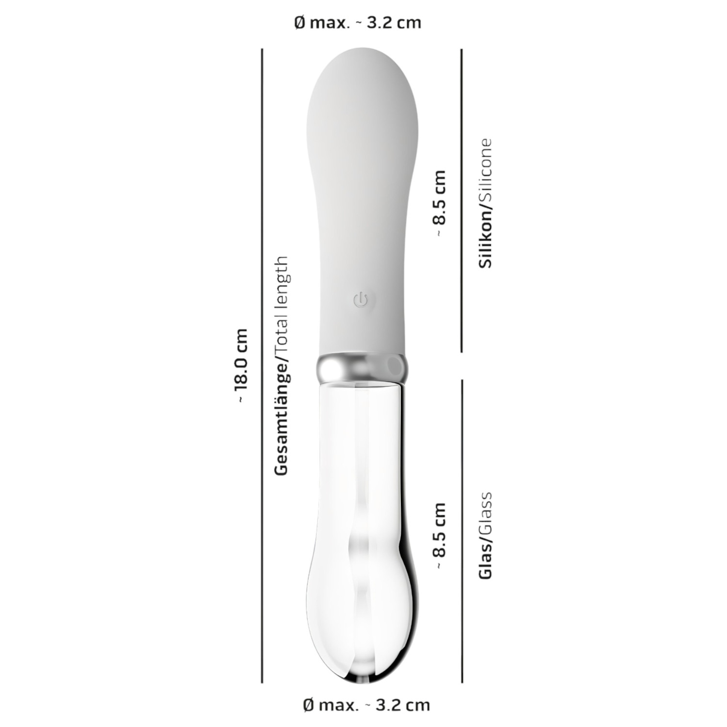 • възможност за употреба и от двете краища - единият е от кадифен силикон, а другият от солидно, висококачествено боросиликатно стъкло