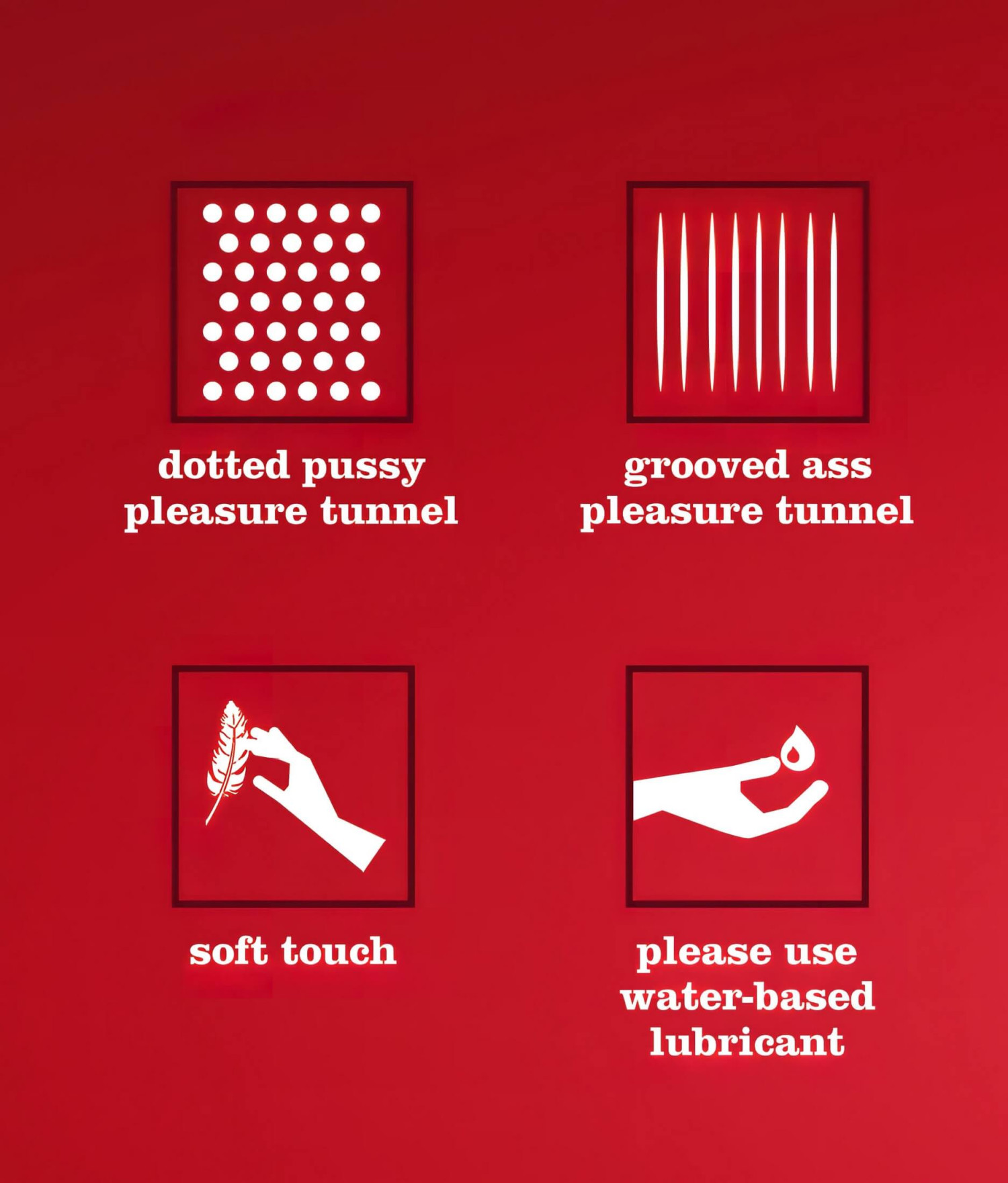 • Две отвори: вагина (9 см дълбочина) и анус (10 см дълбочина)