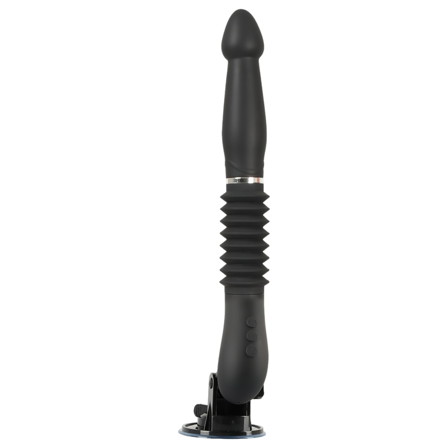 Постави вибратора върху вендузата след като отвориш силиконовия капак под CE знака, и го нагласи под желания ъгъл. Захвани здраво за гладка повърхност и се наслаждавай на удоволствие без ръце. Настрой скоростта на тласкане и режима на вибрация директно от играчката или с безжичното дистанционно.