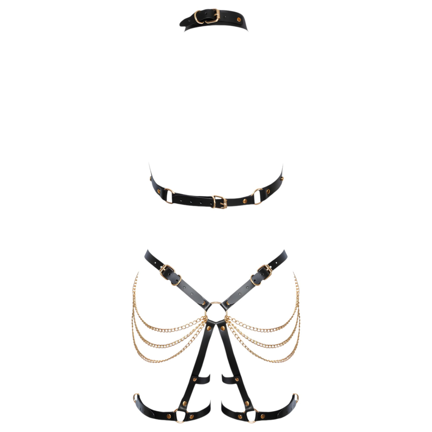 ZADO - двоен комплект кожени сбруи (черно-златно)