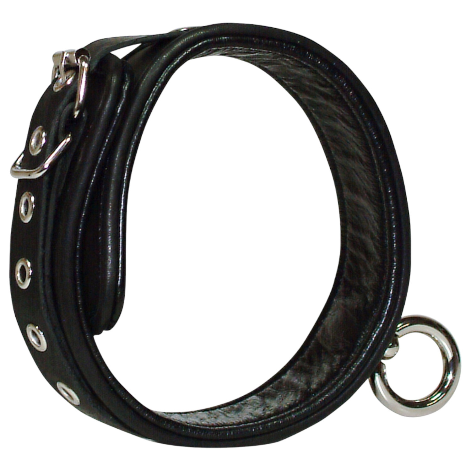 Истинска кожена яка с декоративен метален пръстен - за по-екстремен външен вид и игри с връзване!