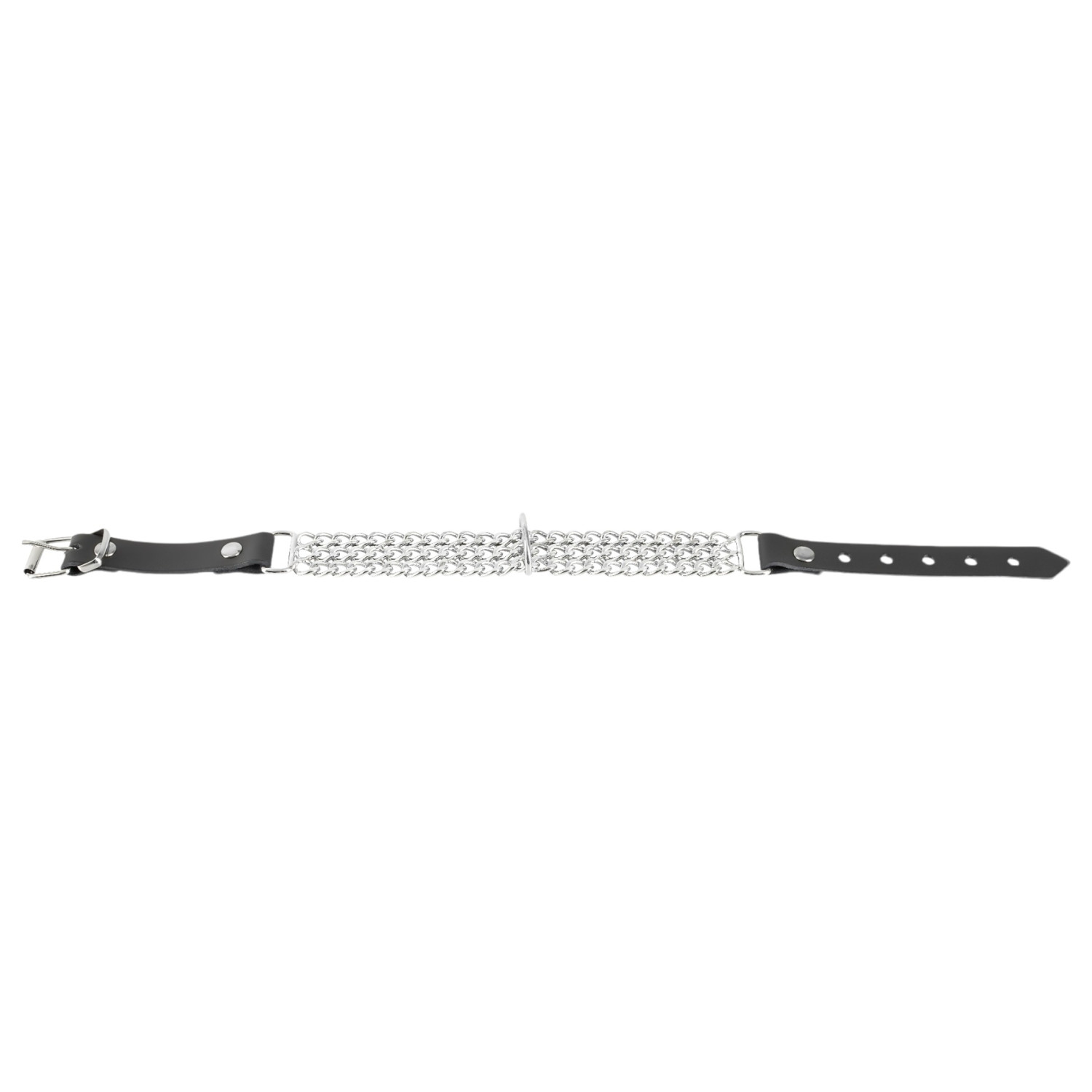 Почувствай доминацията и контрола с този висококачествен триреден метален нашийник с верига.
